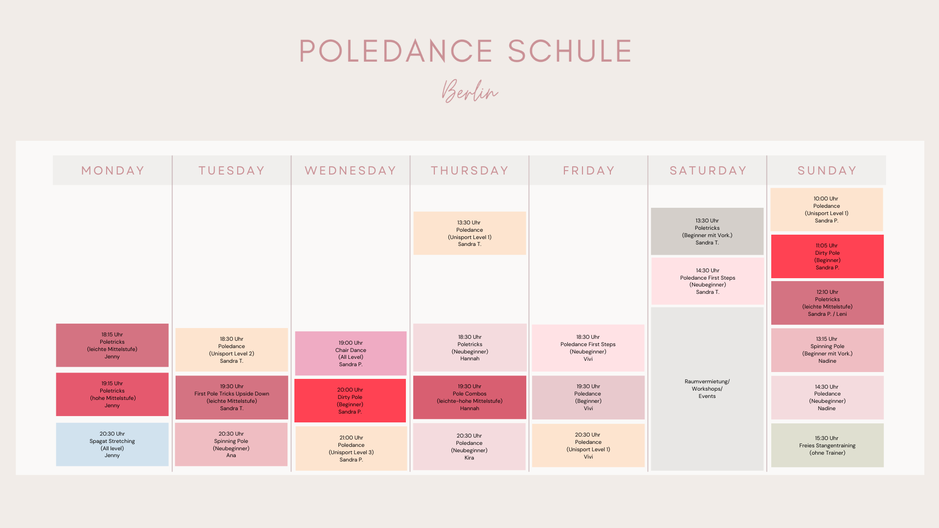 Hey, herzlich Willkommen in der Poledance Schule Berlin! Wir sind ein motiviertes und zertifiziertes Trainerteam, um dir den bestmöglichen Pole-, Arial Hoop und Silkunterricht bieten zu können.